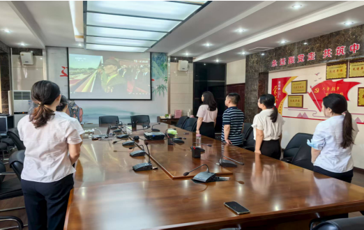 当天上午,办事处员工们早早来到会议室,整齐就座,满怀期待地等待阅兵开始。随着阅兵仪式正式启动,大家全神贯注地注视着屏幕,被一个个整齐威武的方阵、一列列先进精良的装备所震撼。当激昂的国歌奏响,全体员工自发起立,齐声高歌,表达对祖国的无限热爱和崇高敬意。